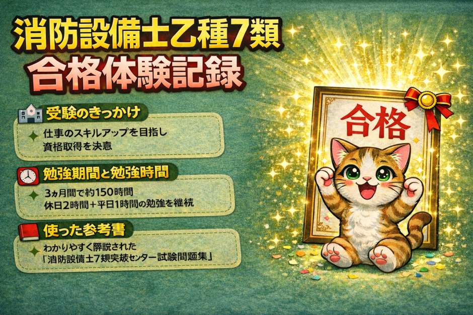 まとめると消防設備士乙7は、初学者でも計画的に勉強すれば十分合格できます。これから受験を考えている方の参考になれば嬉しいです😊